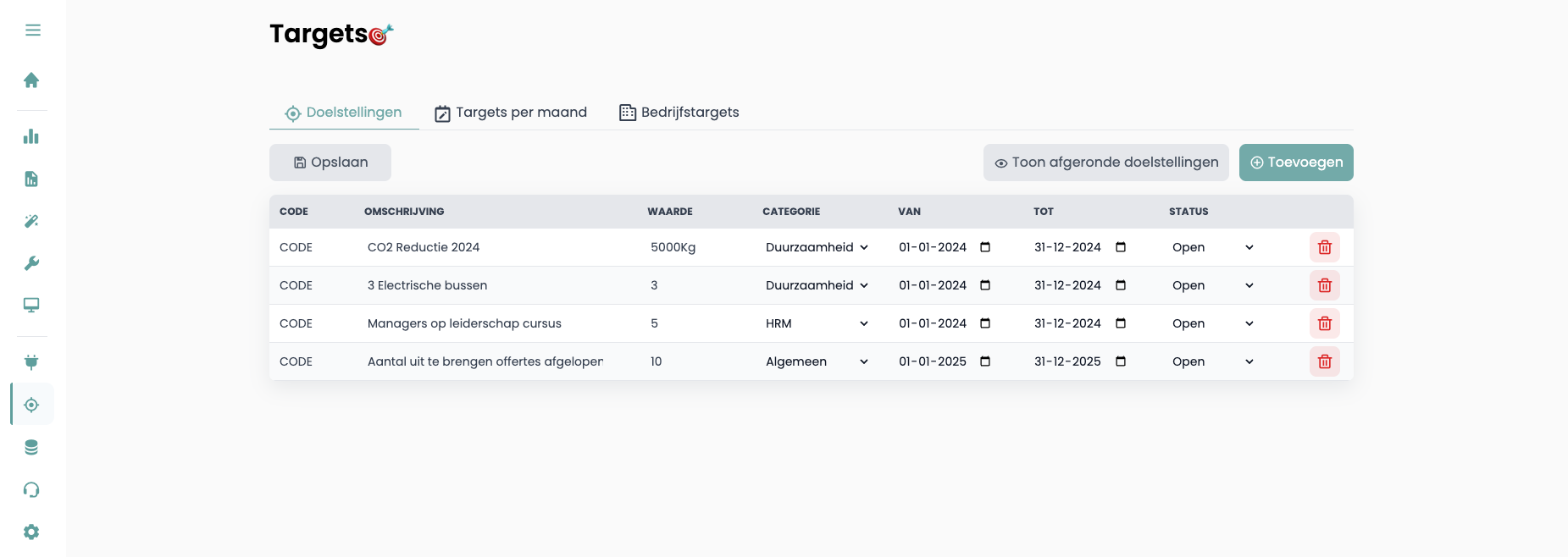 - Centraal beheer: leg targets vast op elk niveau, van salesdoelstellingen tot productienormen.